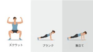 器具不要の基本トレーニング例(スクワット・プランク・腕立て)